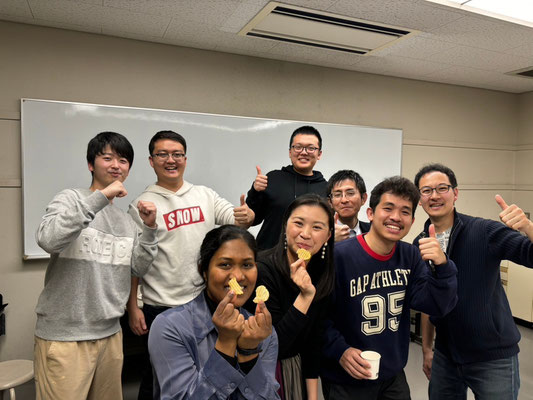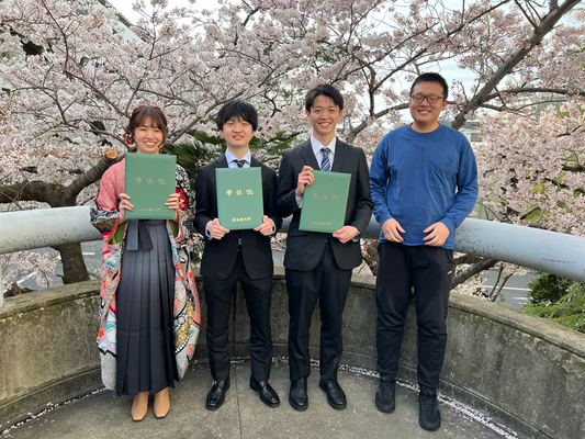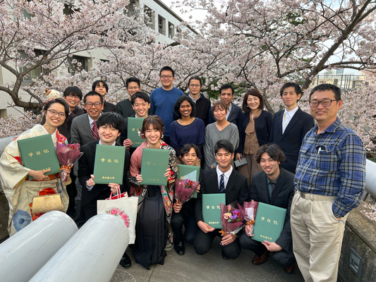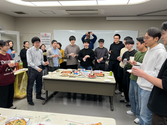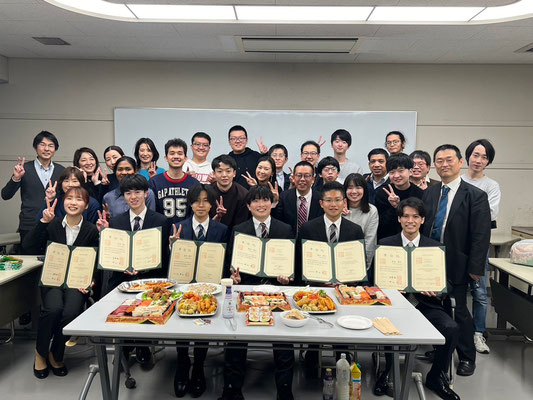 卒業式,学位授与式が行われました.永岡研究室からは修士3名,学士3名(うち進学3名)が巣立っていきました.夜には卒業お祝い+パク君送別会+Alex君歓迎会を行いました.卒業生の皆さんの今後の活躍を期待しています!!